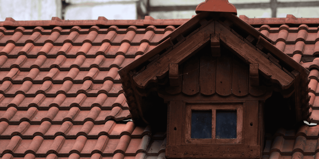 Clay tile roof with dormer window inspected during roof maintenance to keep tiles secure and prevent future leaks